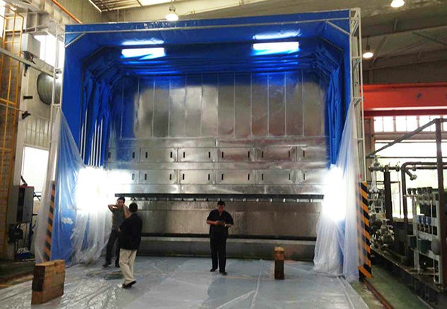 在噴漆房不移動(dòng)一端安裝有水簾式噴漆柜,噴漆產(chǎn)生的漆霧通過(guò)水簾凈化或排放到車(chē)間外部,漆霧由水過(guò)濾或回到水池中,定期清除。