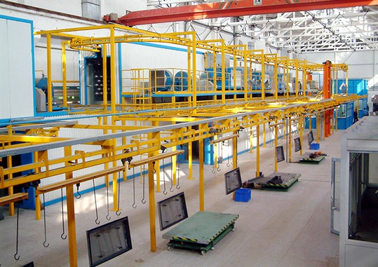 涂裝流水線的七大組成部分主要包括:前處理設備、噴粉系統、噴漆設備、烘爐、熱源系統、電控系統、懸掛輸送鏈等。