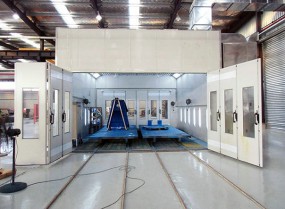 伸縮性噴漆房有伸縮房體、水簾式噴漆柜組成。伸縮房體展開(kāi)后有8米長(zhǎng),收縮后只有1.5米長(zhǎng)。房頂裝有8盞防爆燈,有良好的光線。噴漆房推薦采用人工推拉方式(需采用電動(dòng)驅(qū)動(dòng)需說(shuō)明)。